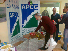 En un año difícil, en el que la crisis está golpeando duramente al sector de la comunicación, y no sólo en la comarca, sino en toda España, y en el que hay muchos compañeros que lo están pasando mal, la junta directiva de la APCG, presidida por Estanislao Ramírez, ha querido hacer un esfuerzo para mantener en este 2012 tanto la tradicional jornada navideña de convivencia como la colaboración iniciada el año pasado con el Banco de Alimentos. A petición de la propia entidad, presidida por José Cabello, la directiva de la APCG había hecho un llamamiento en los últimos días a sus algo más de 100 asociados para que acudieran al acto, celebrado este fin de semana, con algunos de los víveres más necesarios en estos momentos, como arroz, garbanzos, lentejas, judías y aceite.